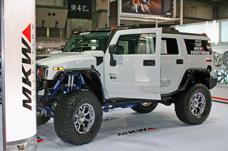通路から良く見える位置に展示されたハマーH2が印象的な、ブース。
