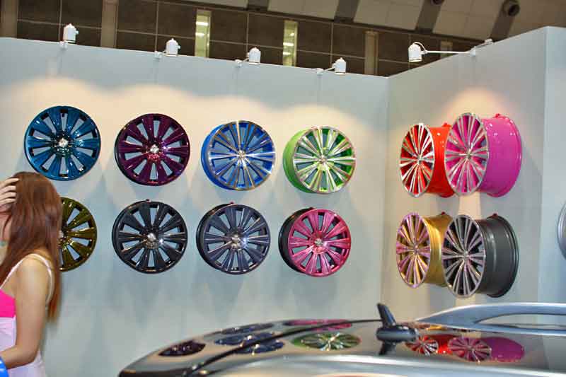 カラフルなホイールは発売前ですが、色を塗るだけなので興味がある方は問い合わせしてほしいとのことでした。 デモカーとして展示されていたのは、以下の2台。