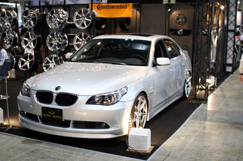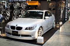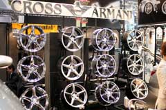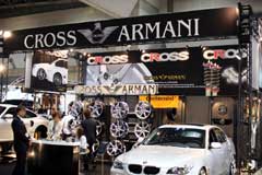 BMW/BENZに対応する CROSS ARMANI STELLA 05107 ホイールを展示。 その他にも車高調整式サスペンション(BMW/PORCHE対応)などを展示していた。